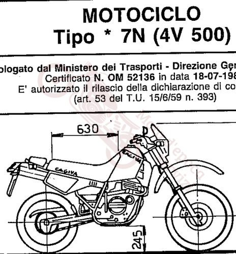 Scheda tecnica di omologazione completa, dichiarazione di conformità e aggiornamento 1987