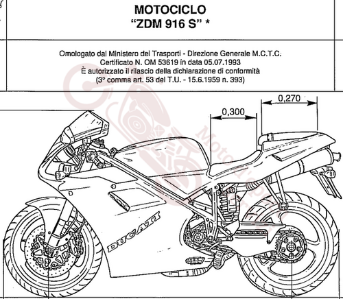 Scheda tecnica di omologazione completa, dichiarazione di conformità, fac simile libretto di circolazione e aggiornamenti 1993 e 1996