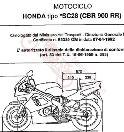 Scheda tecnica di omologazione completa, dichiarazione di conformità e aggiornamento 1994